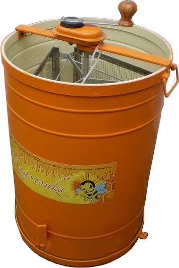 Любительская компактная необоротная 2-рамочная медогонка класса "ЭКОНОМ" для небольшой пасеки (от 3 пчелосемей). Предназначена для извлечения пчелиного мёда из распечатанных гнездовых и магазинных сотов под действием центробежной силы. Бак медогонки выполнен из эмалированной стали с шовной сваркой и закреплен металлическим ободом, благодаря чему исключена протечка. Карусель и кассеты данной медогонки выполнены из металлопластика. Кассеты являются необоротными, поэтому нужно вынимать и переворачивать рамки самостоятельно. Удобная деревянная ручка позволяет с лёгкостью вращать кассеты. Механизм редуктора надежно скрыт в кожухе из нержавеющей стали, благодаря чему исключено случайное попадание смазки в мёд. В нижнем ободе медогонки имеются крепежные элементы для надёжной фиксации медогонки на поверхности, либо для крепления подставки. Кран медогонки выполнен так же из нержавеющей стали, благодаря чему срок его службы достаточно большой. Компактные размеры медогонки позволяют использовать её не только в стационарных, но и в полевых условиях, так как она весьма мобильна и входит в любой легковой автомобиль.